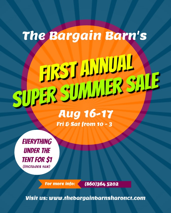 Come on down for our very exciting first Annual Super Summer Sale! The sale will be taking place right outside the store this Friday & Saturday, August 16th & 17th, from 10 to 3. Every item under the tent will be $1 each, including tax!!